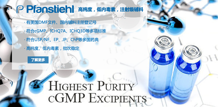 “熱烈祝賀Pfanstiehl的注射級甘氨酸Glycine(G-140)喜獲CDE登記號F20250000403, 這是Pfanstiehl產品獲得的第18個CDE登記號!”甘氨酸在醫藥輔料制劑中應用廣泛,, 可作為緩沖劑,增溶劑,穩定劑等,具有諸多優勢。Pfanstiehl秉承一貫高品質理念,為滿足全球生物制藥行業對于高品質甘氨酸的需求,隆重推出的注射級甘氨酸Glycine (G-140), 具有超高純度,超低內毒素,超低金屬殘留的特點,單獨檢測29種金屬離子,并且新增DNA,RNA,DNA酶,RNA酶和脂肪酶,亞硝酸鹽等多項質量指標的檢測,符合多國藥典規定(USP, EP, BP, JPE, ChP),可用于生物治療性藥物和疫苗的生產。產品信息:· 產品名稱:Glycine, High Purity, Low Endotoxin, Low Metals, USP, EP, BP, JPE, ChP (G-140)· 中文名稱:甘氨酸· 分子式:C2H5NO2· 分子量:75.07 g / mol· CAS號:56-40-6· 產品貨號:G-140產品特點: · 超高純度,超低內毒素,超低微生物含量,超低金屬雜質殘留· 質量指標新增DNA,RNA,DNA酶,RNA酶,脂肪酶和亞硝酸鹽檢測· 符合多國藥典:USP, EP, BP, JPE, ChP· 符合ICH Q3D標準· 符合GMP標準· 已獲DMF和CDE登記號 產品應用:· 緩沖劑· 穩定劑· 增溶劑如果您對Pfanstiehl注射級別Glycine G-140感興趣,歡迎聯系Pfanstiehl 中國區代理商北京西美杰科技有限公司獲得如下詳細的產品概況說明文件和測試樣品。Pfanstiehl Inc.最新產品系列如下,歡迎聯系北京西美杰科技有限公司獲取100g裝免費樣品。北京西美杰科技有限公司為Pfanstiehl中國代理,為客戶提供完善的技術支持與售后服務。歡迎撥打西美杰客服電話400-050-4006或者登陸網站www_xmjsci_com.yayuyw.com了解更多信息。 更多>